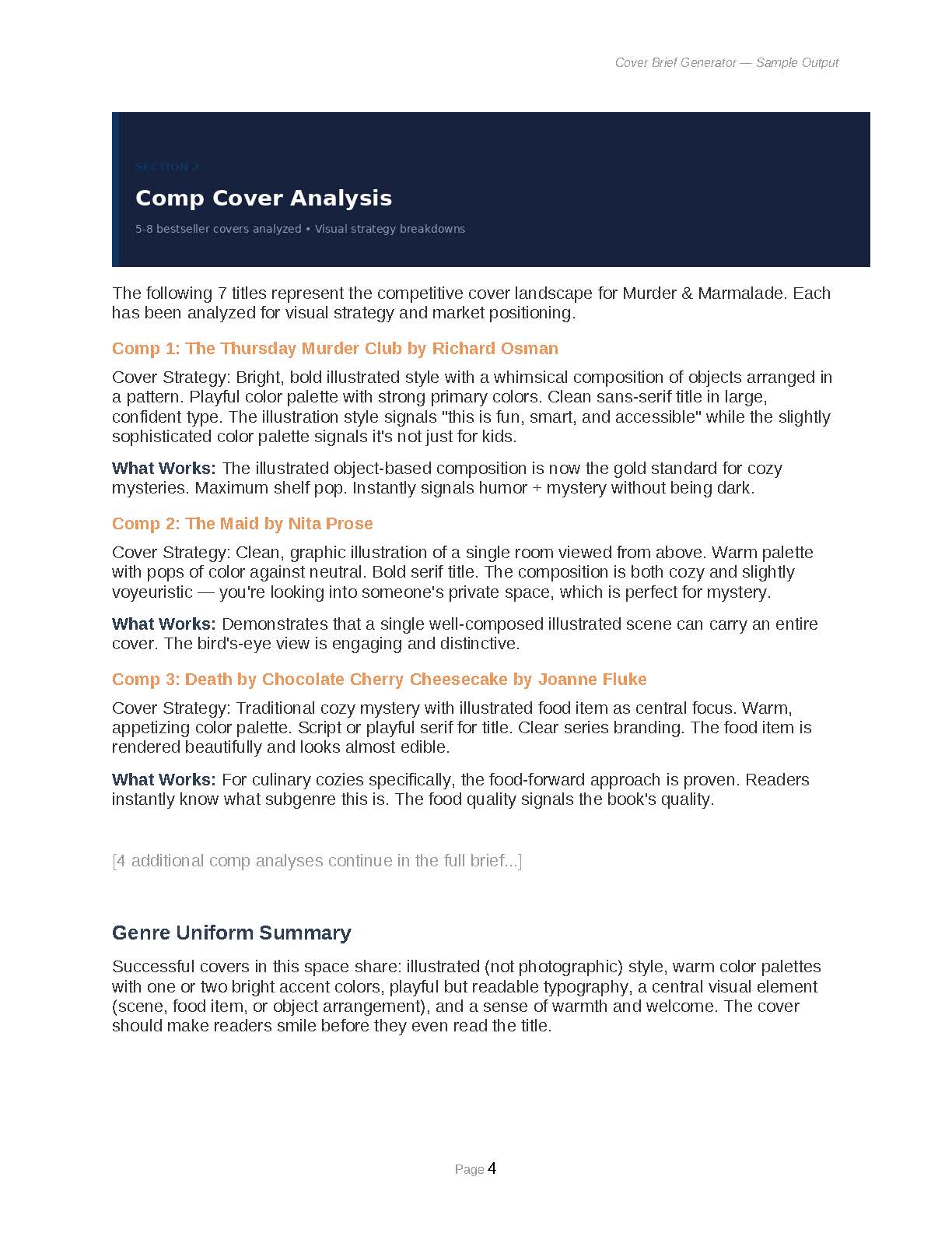 - Comp Cover Analysis: 5-8 current bestselling titles in your subgenre with detailed breakdowns of color palettes (hex codes), typography, imagery, and composition
