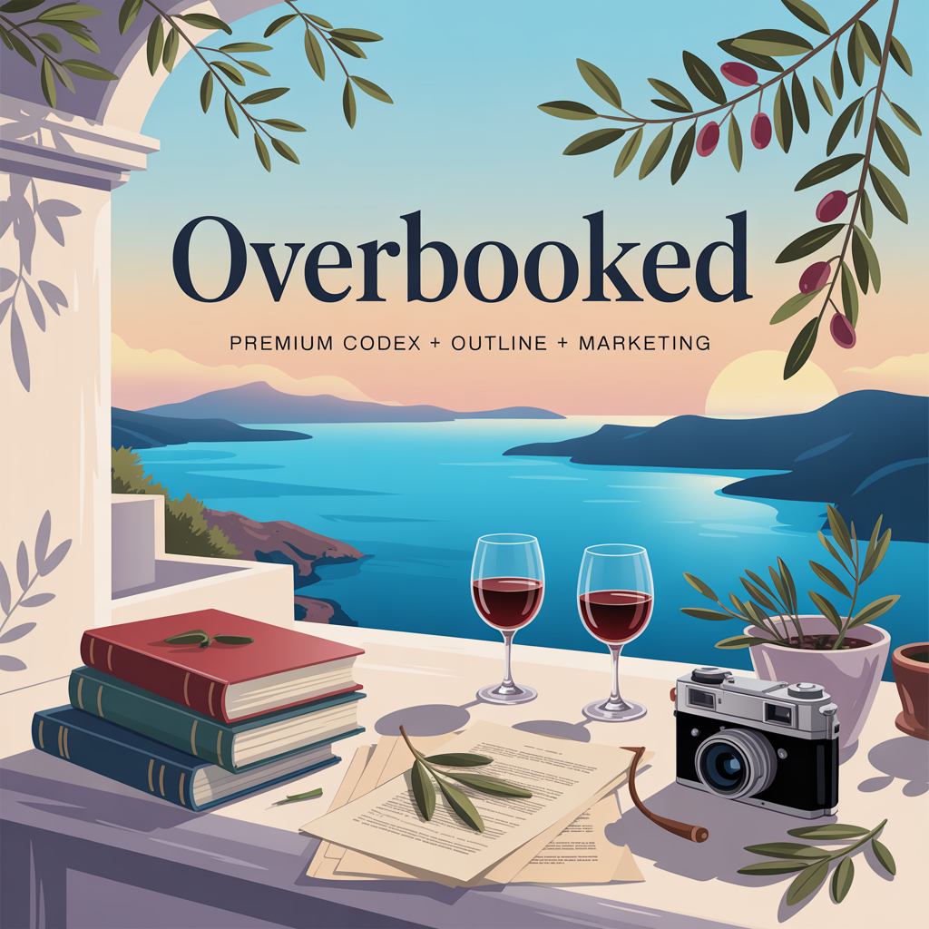 Overbooked — Complete Codex + Story Outline + Marketing Suite for a travel romantic comedy with fake relationship vibes.